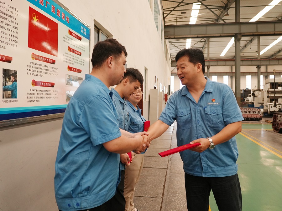 7月1日,在慶祝中國共產黨成立104周年之際,中船河柴黨委副書記、總經理王正祥,黨委委員、紀委書記劉文凱化身“榮譽使者”,走進車間廠房、辦公室等,把“先進基層黨組織”“優秀共產黨員”和“優秀黨務工作者”的證書送到受表彰者手中,以別開生面的形式讓這場表彰既有溫度,又有力量。